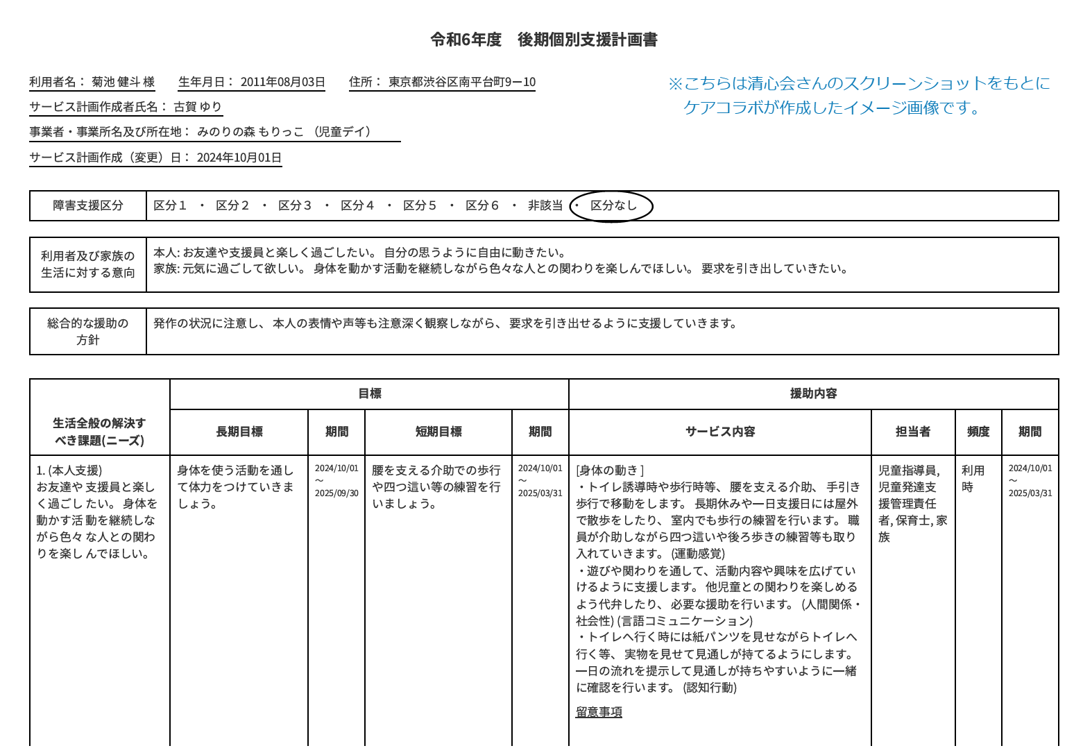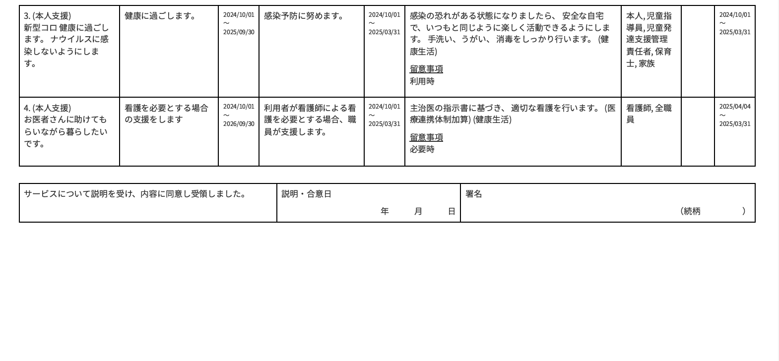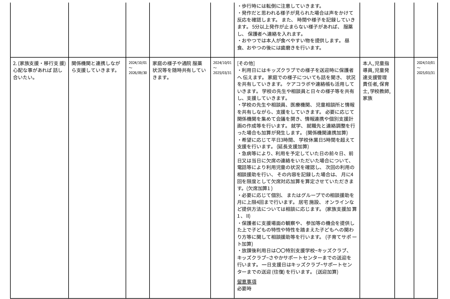 個別支援計画書に記載が必要な 本人支援・家族支援・移行支援などの≪項目≫は、